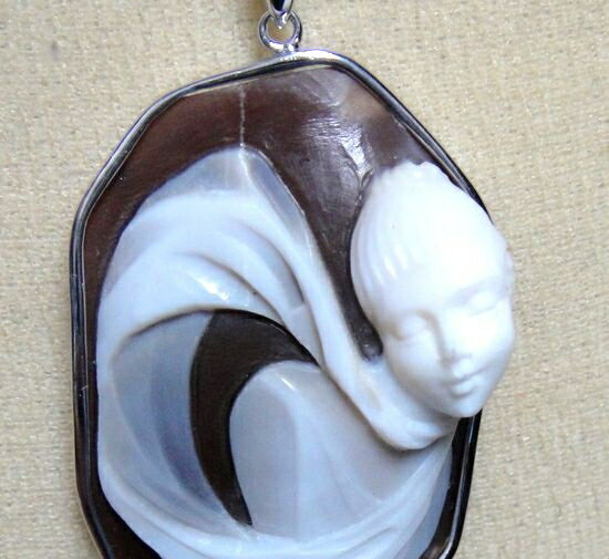 【作家カメオ】ストールの女M 立体K18WGシェルカメオペンダントトップ【エスポジート】【サルドノニクス,サルドニクス,サードニスクシェル,パスクワーレ,パスクァーレ,Esposito,cameo】【R】