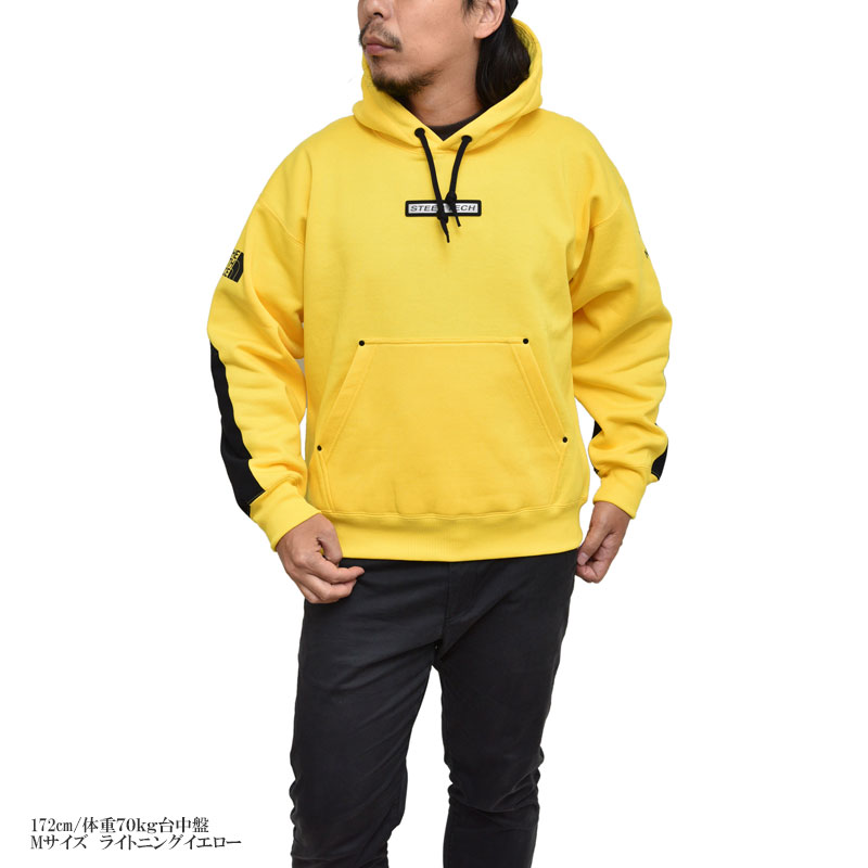 ややビッグシルエットで仕上げているので、ストリートでのコーディネートにも活用しやすいデザインです 素材身生地:RDT Sweat ECO(ポリエステル100%) 貼付布(肘):APEX Aerobic Super Light ECO(ナイロン90%/ポリウレタン10%) リブ部:ポリエステル95%/ポリウレタン5% 生産国中国製 主な仕様・適度な通気性と速乾性に優れ、汗処理機能を兼ね備えたやや厚手のリサイクルポリエステル素材 ・肌面は柔らかい肌触りの保温性に優れた裏起毛 ・摩耗が生じやすいひじ下はストレッチナイロンで補強 ・ドローコード付きフード ・フロントにカンガルーポケット ・袖口、裾はリブ仕立て ・背面にはスコットシュミット自身の理論に基づいた雪山での哲学をデザインに落とし込んだグラフィックをプリント ・フロントにSTEEP TECHロゴワッペン ・両袖にロゴプリント ・静電気の発生を抑える静電ケア設計 サイズ 単位 cm 身幅 着丈 袖丈 肩幅 裾幅 S 55 63 55 55 43 M 58 65 57 58 45 L 60 67 59 60 47 XL 62 69 61 62 48 スタッフが試着した感想をご紹介(スタッフデータ詳細) ▼がっちり型(標準体型男性)身長172cm/体重70kg台普段トップスは日本のサイズ規格のものでLサイズ、ノースフェイスのリアビューフーディーはMサイズ、スクエアロゴフーディーはLサイズを着ています。